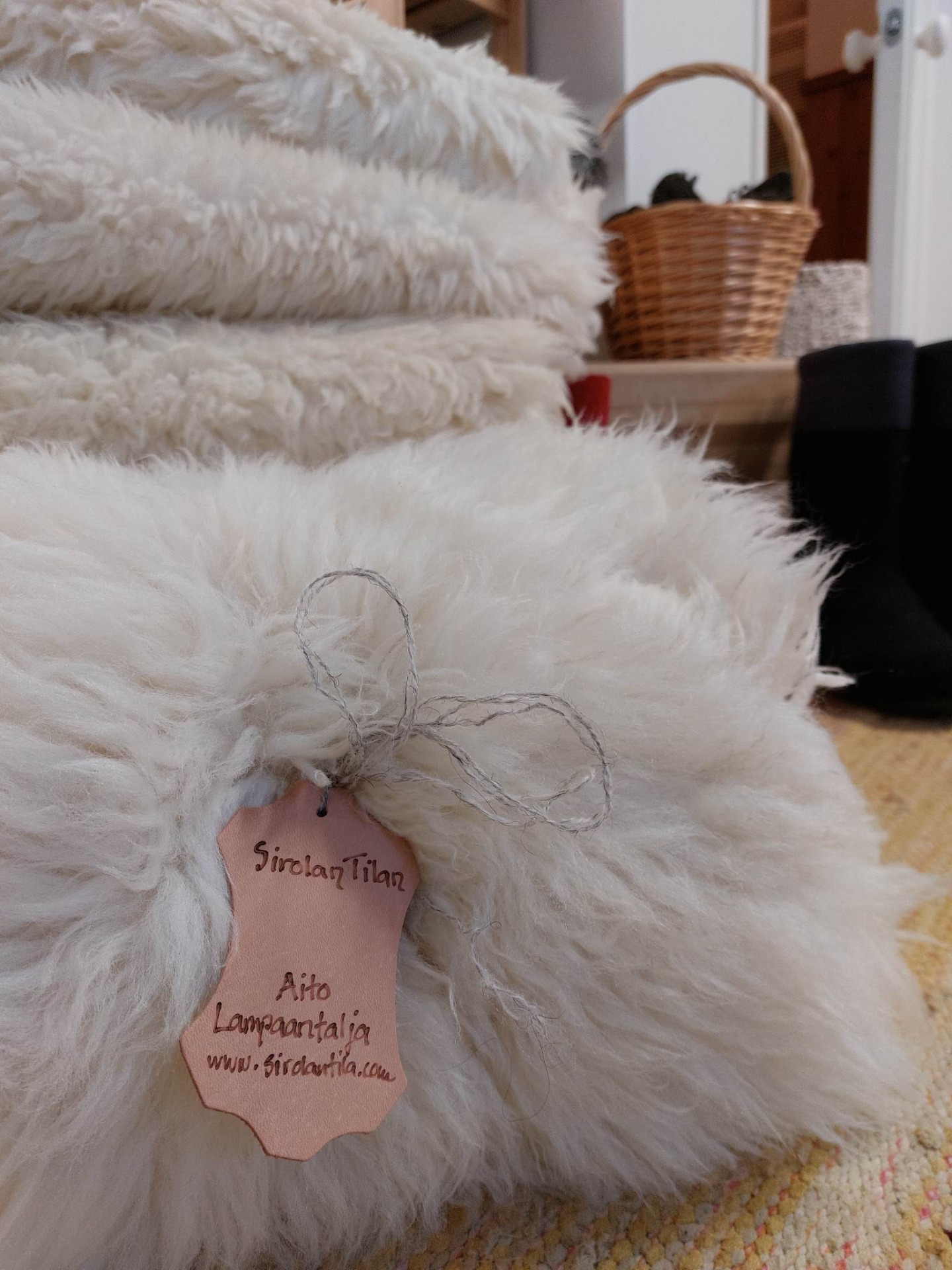 Tilapuodistamme löydät myös oman tilamme muhkeat lampaantaljat, sekä iki-ihanat 100% kotimaiset villalangat.